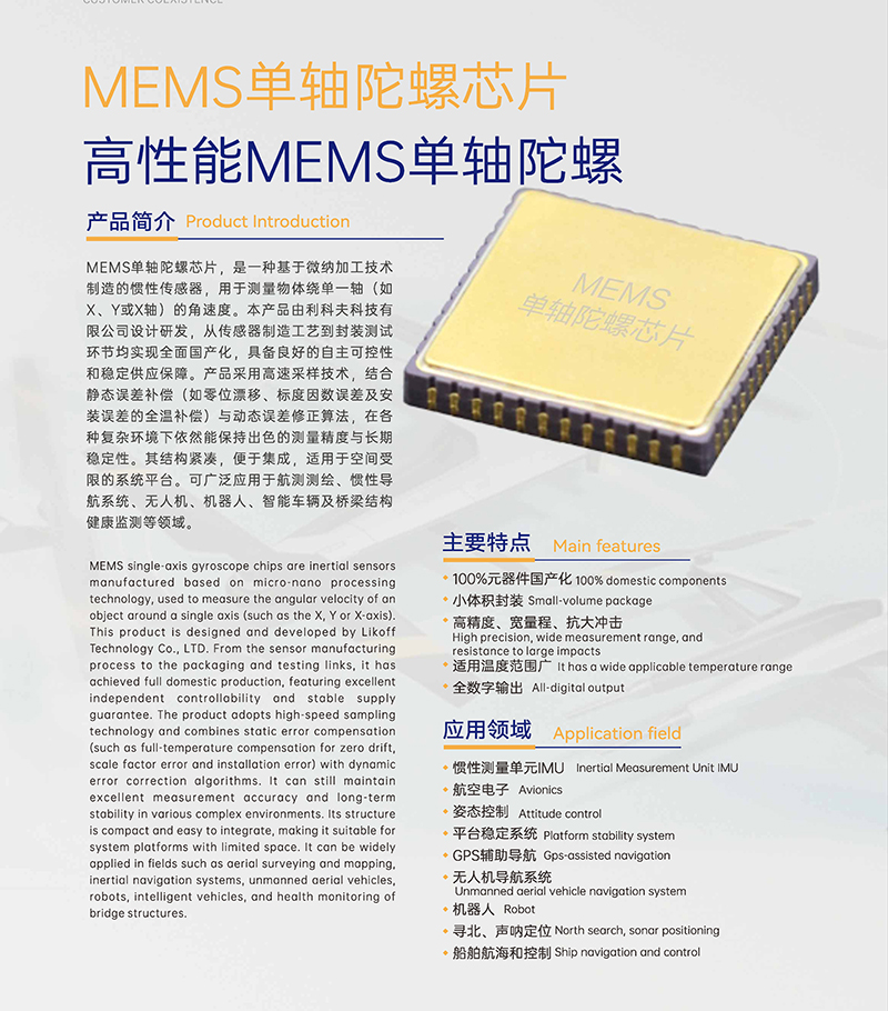 MEMS单轴陀螺芯片高性能MEMS单轴陀螺