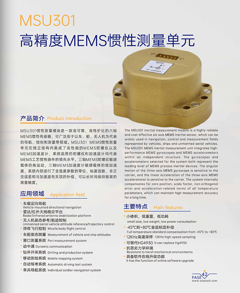 MSU301 高精度MEMS惯性测量单元